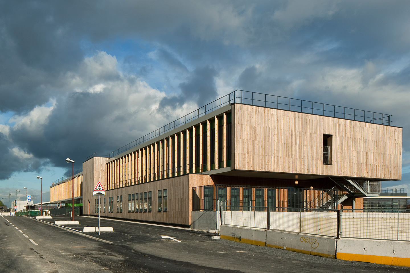 Son architecture exprime fortement son implication dans une démarche de développement durable : la Haute Qualité Environnementale y prend une dimension pédagogique. Elle traverse le projet, par son implantation, lajustement des gabarits, les choix de matériaux mais aussi lorientation des espaces, la mise en scène des protections solaires en façade, lattention particulière portée à la gestion des eaux de pluie.