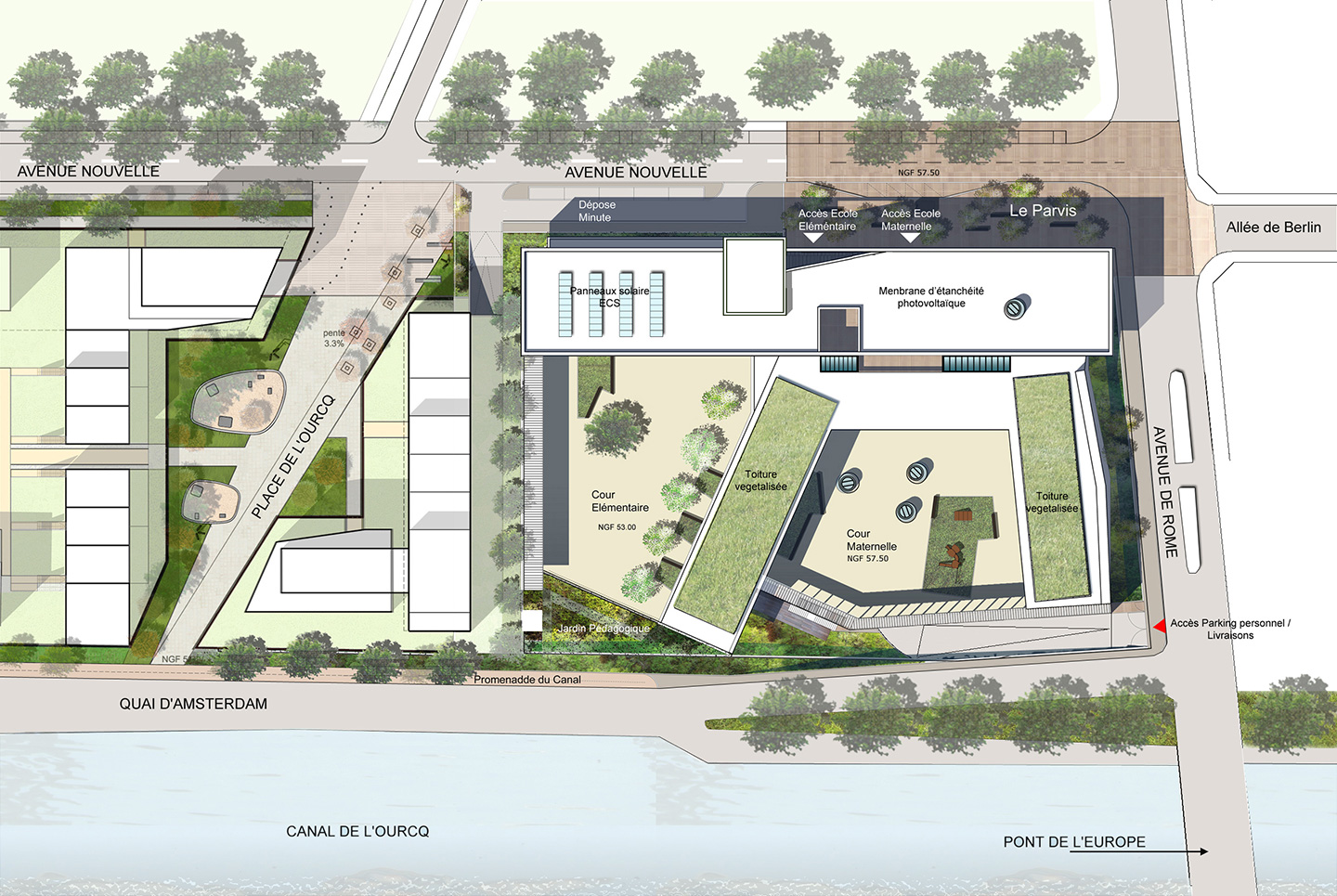 Maîtrise d'oeuvre > DAQUIN & FERRIERE ARCHITECTURE, mandataire // CET, BET TCE et économiste // GESTION CONSEIL BATIMENT, BET HQE // AGENCE POLES, paysagiste